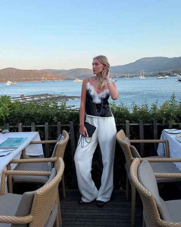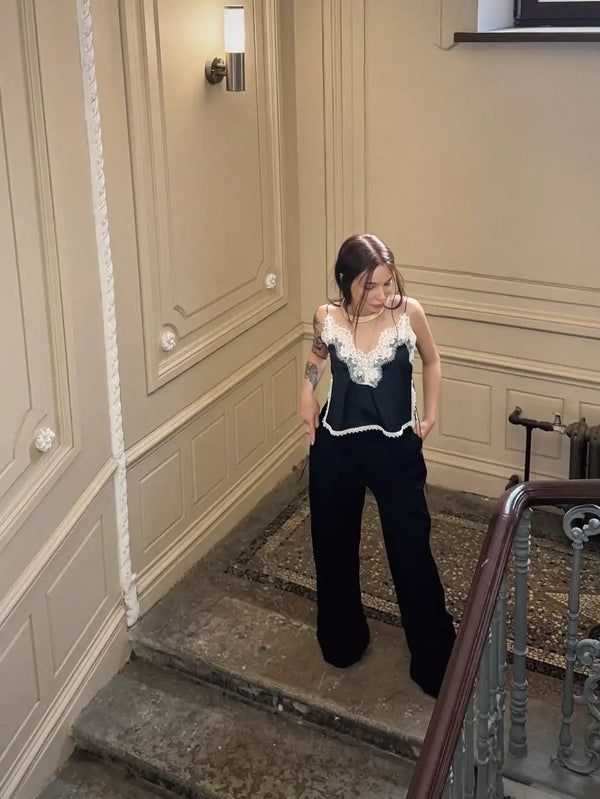 Lace panels are decorative but balanced with solid fabric placement to avoid unwanted exposure while keeping a delicate, stylish look.